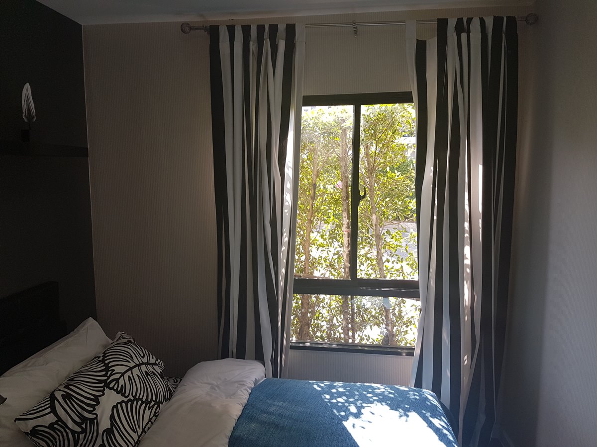 ห้องขนาด 47 ตรม. ตึก A ชั้น 1 เดินเข้ามาจากหน้าโครงการเป็นตึกแรกเดินไม่ไกล เป็นห้องมุมที่มองออกไปจะเห็นทางเข้าโครงการ รอบๆห้องมีต้นไม้ปลูกเป็นรั้วสวยงาม ห้องแต่งครบพร้อมเฟอร์นิเจอร์เข้าอยู่ได้เลยครับ